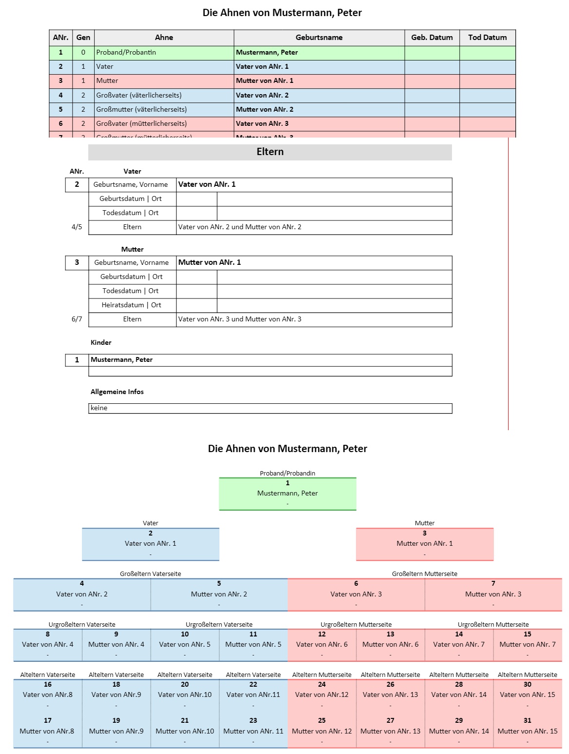 Mit dieser Vorlage können Sie jedoch eine Ahnenliste bis zu den Alteltern erstellen.