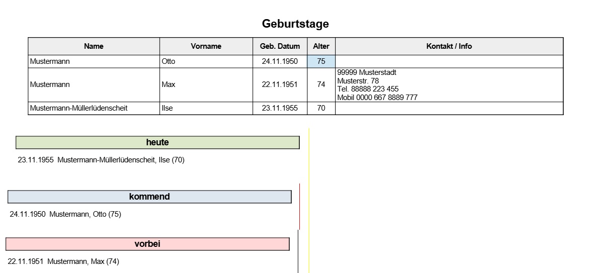 Mithilfe dieser Vorlage kann man Geburtstagsdaten einfach verwalten.