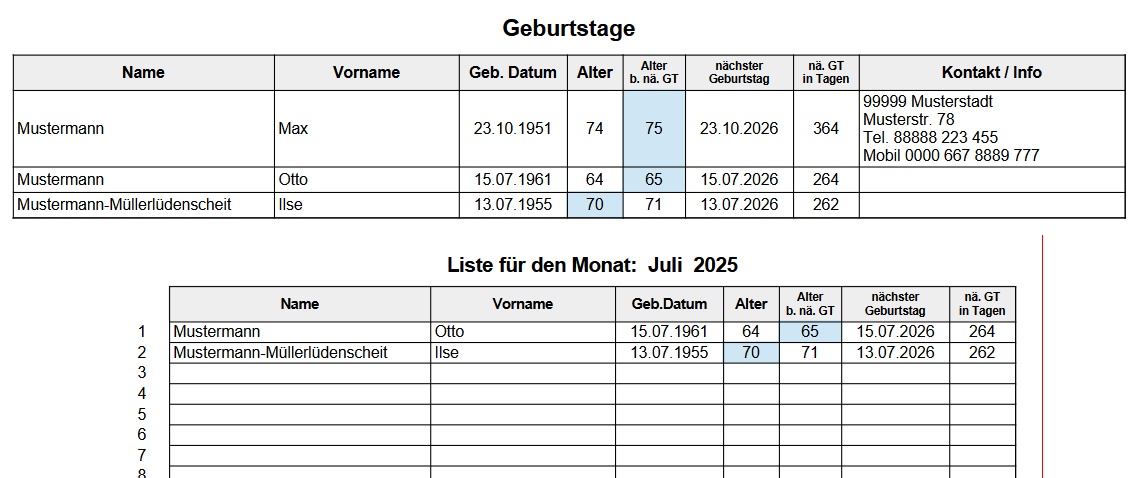 Mithilfe dieser Vorlage kann man Geburtstagsdaten einfach verwalten.