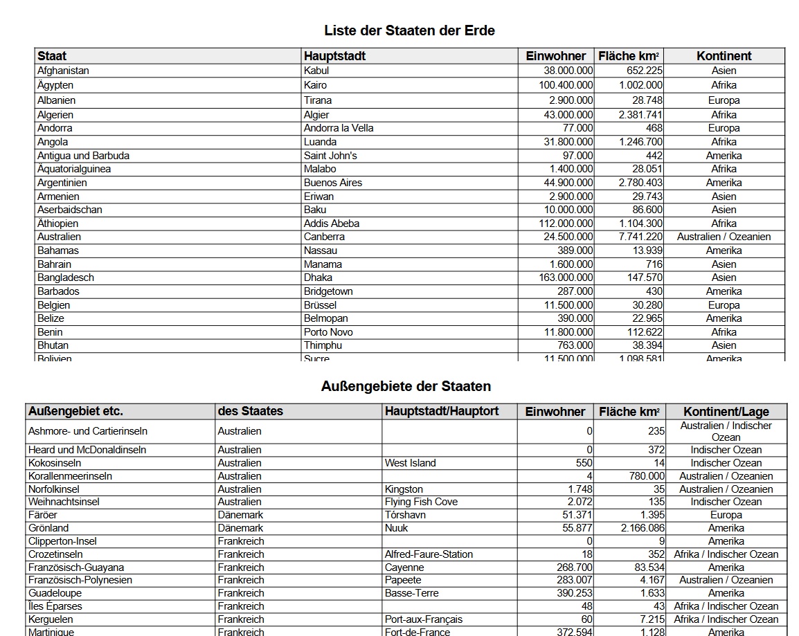 Sie ist ein nützliches Hilfsmittel für alle, die schnell und einfach Informationen zu verschiedenen Ländern suchen.